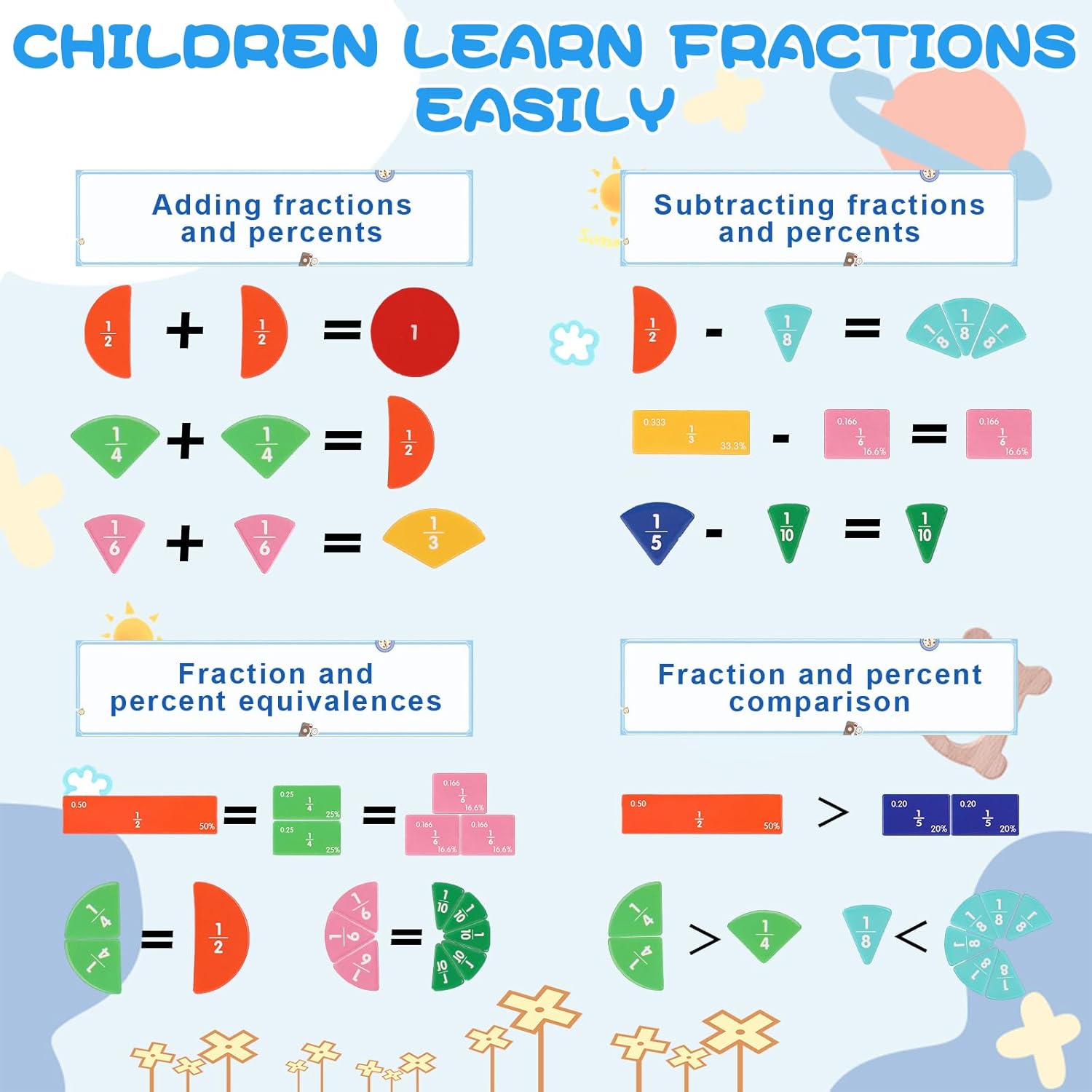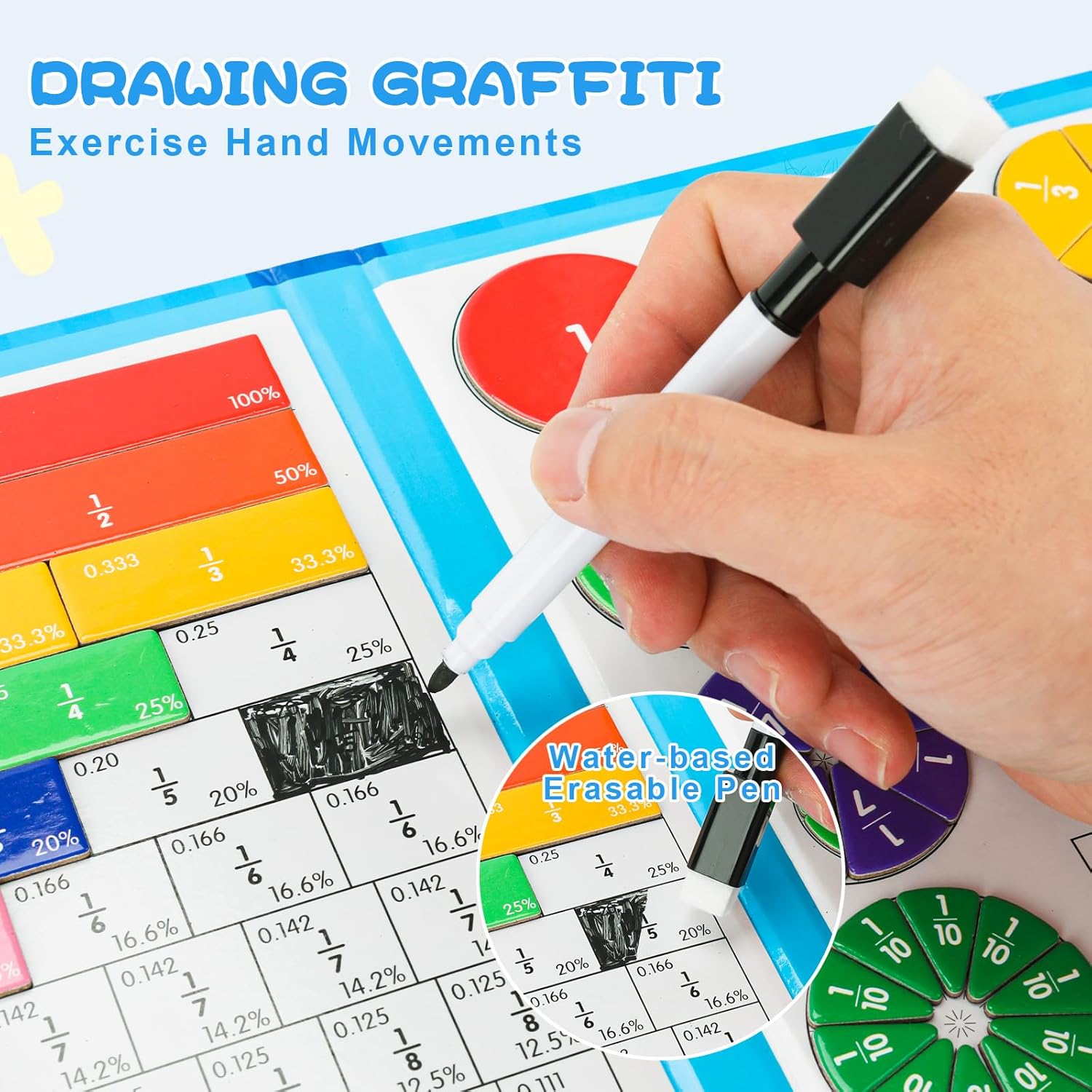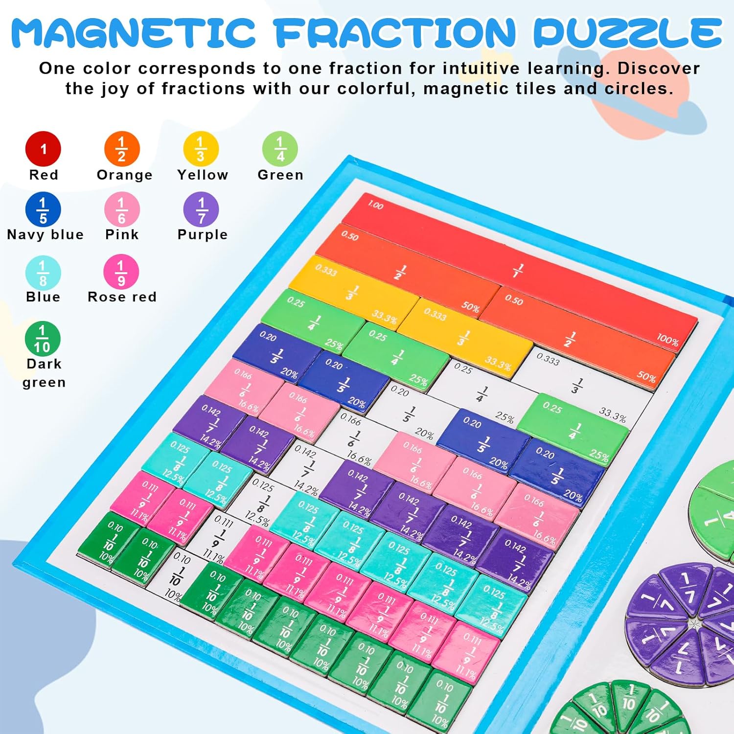Casse-tête éducatif à fraction magnétique, 110 pièces pour enfants, carreaux de fraction magnétiques et cercles de fractions, jeux d'apprentissage des manipulations de fractions pour l'école primaire