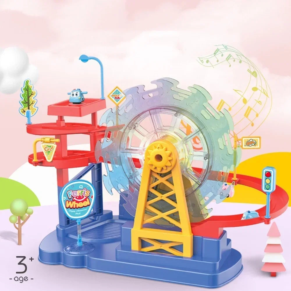 Electric Train Toy Track Ferris small train Wheel Slide Track Toy with Music Light Children Educational Toys Kids Gift