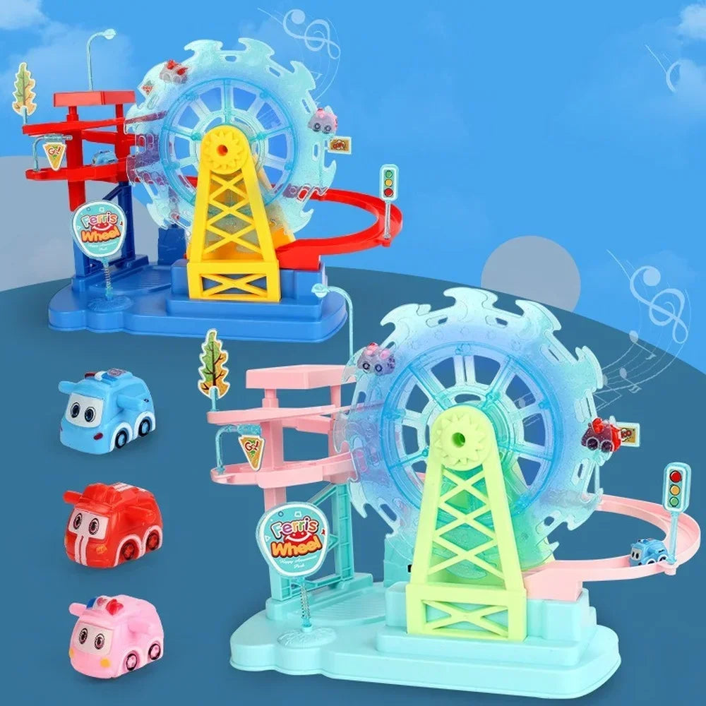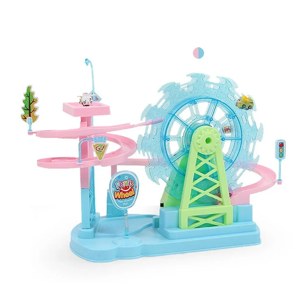 Electric Train Toy Track Ferris small train Wheel Slide Track Toy with Music Light Children Educational Toys Kids Gift