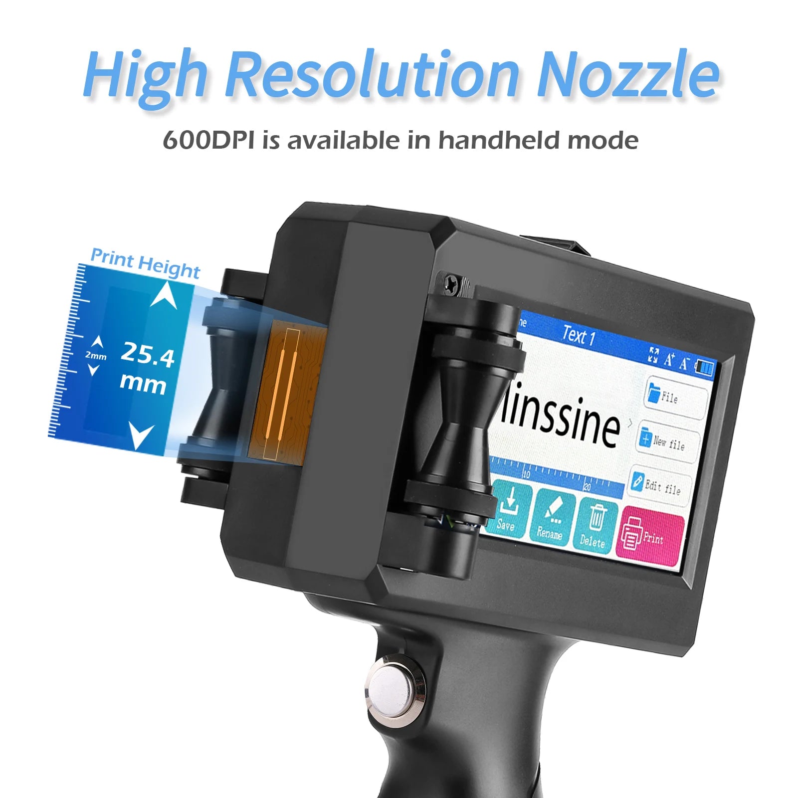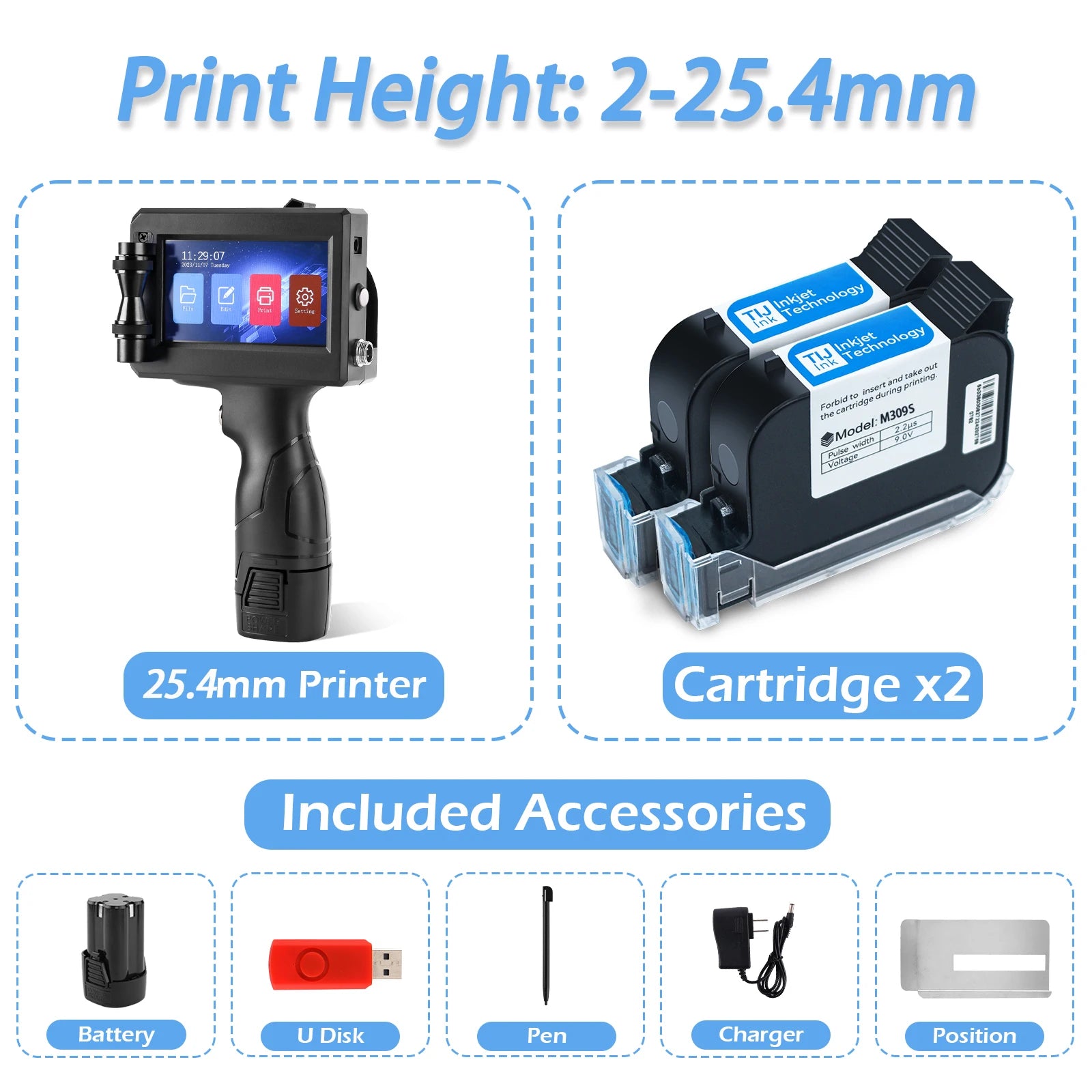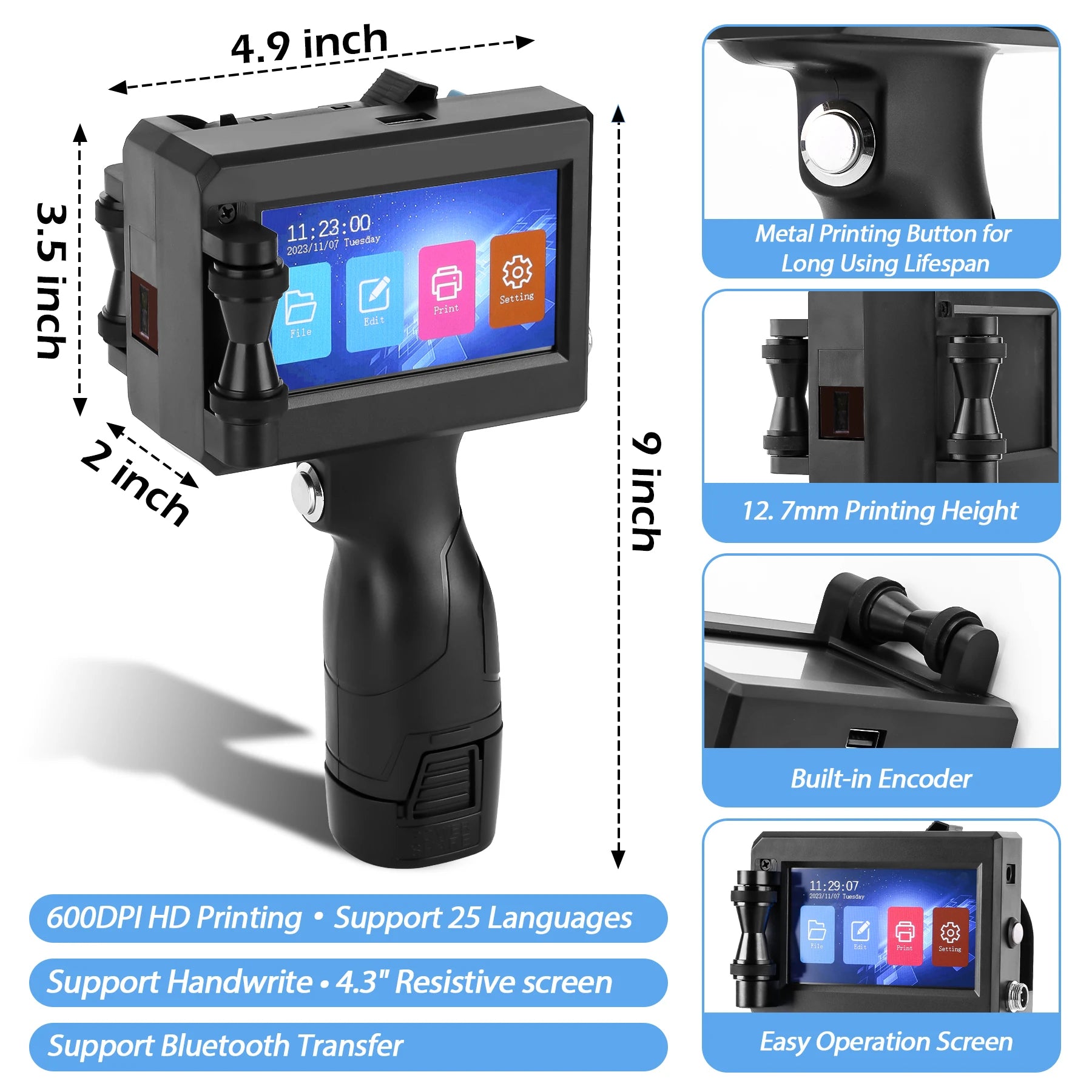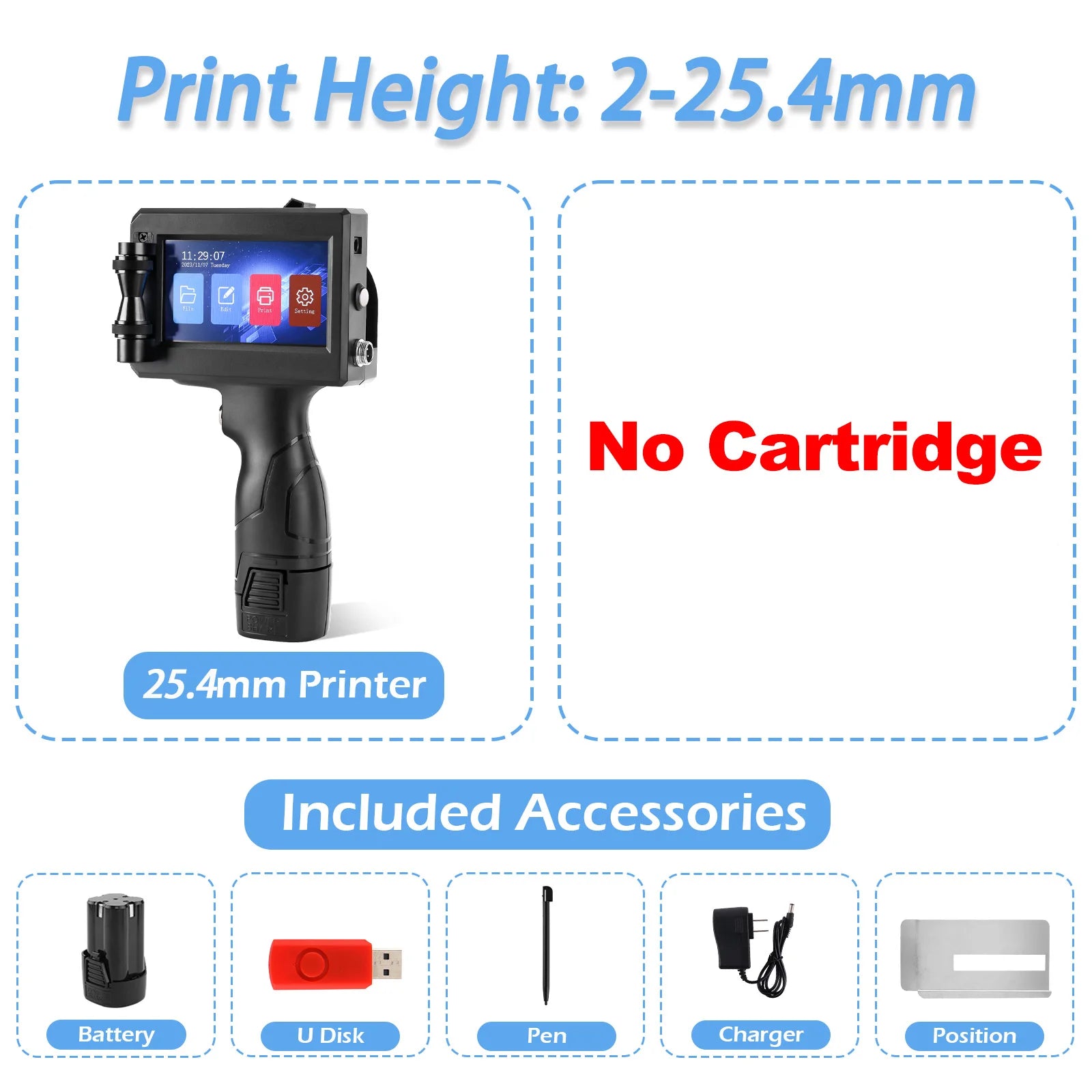 Handheld Inkjet Printer 12.7/25.4mm for QR Barcode Batch Date Number Logo Expiry Date Coding Machine 25 Languages Non-encrypted