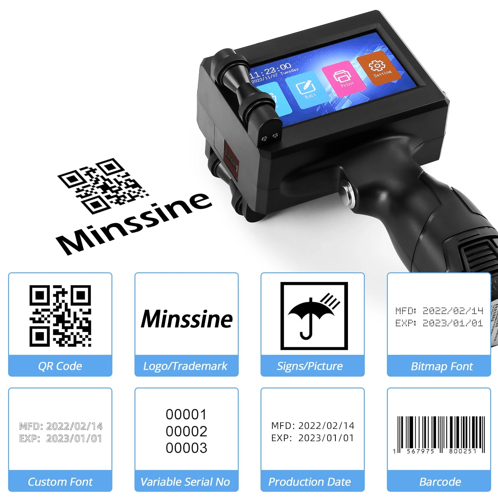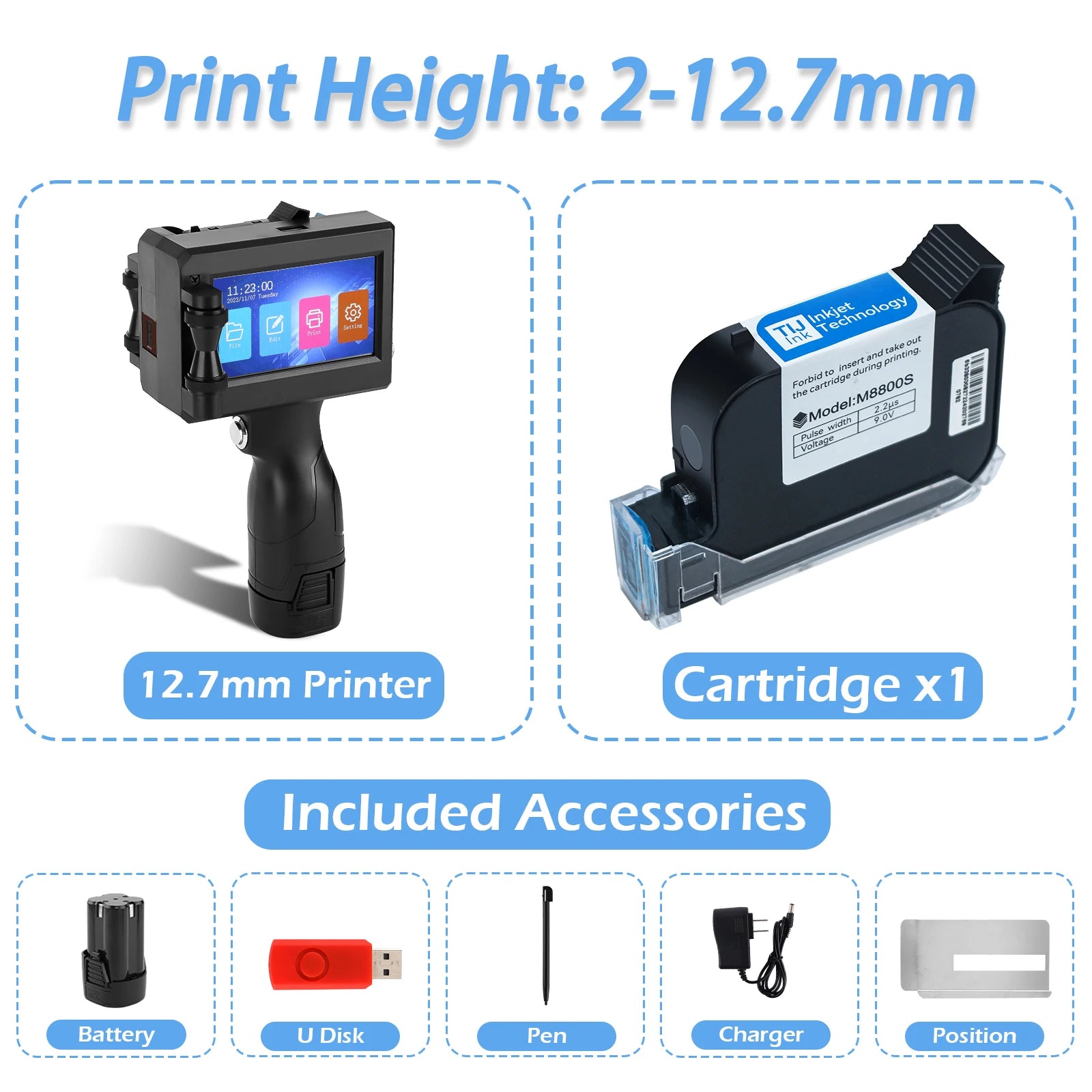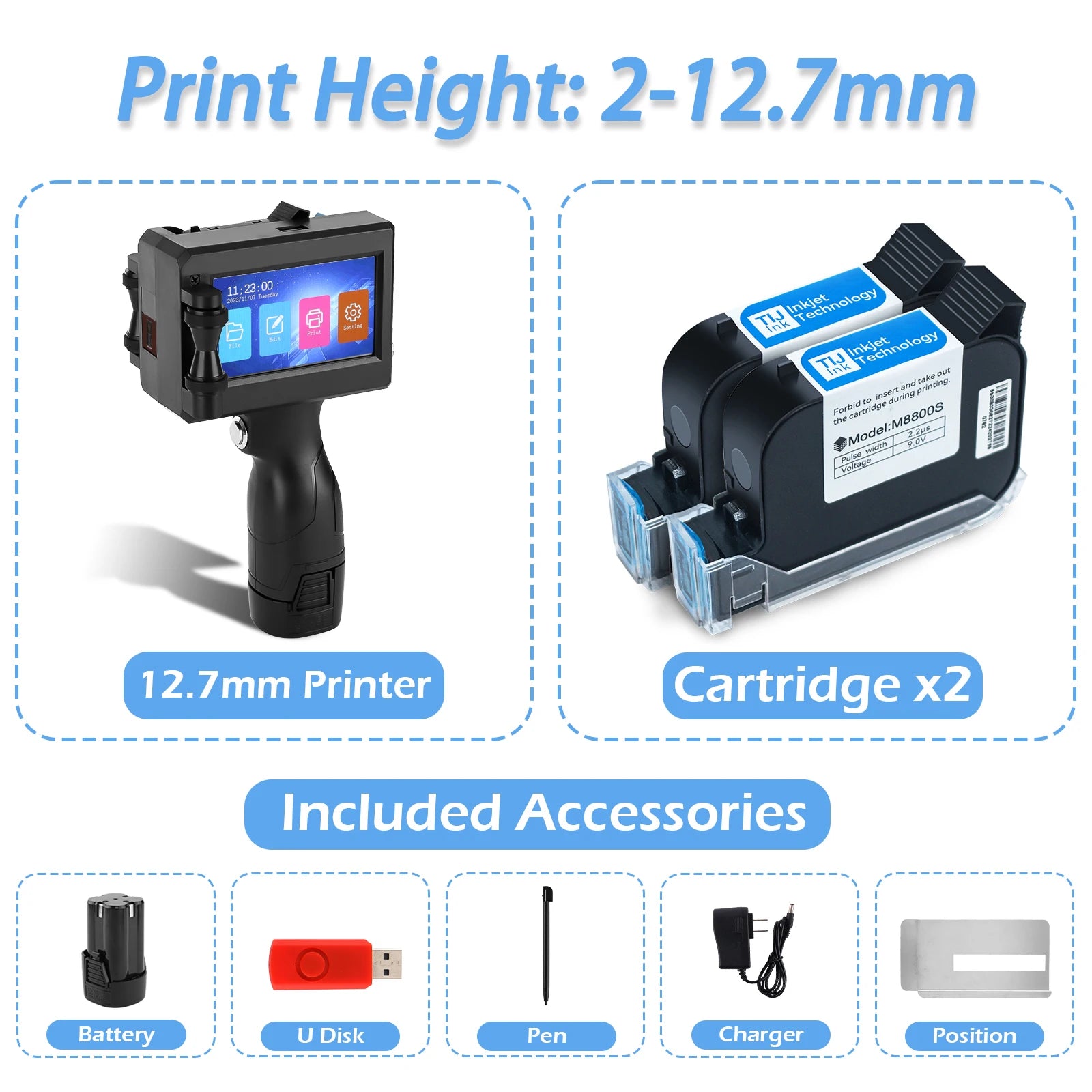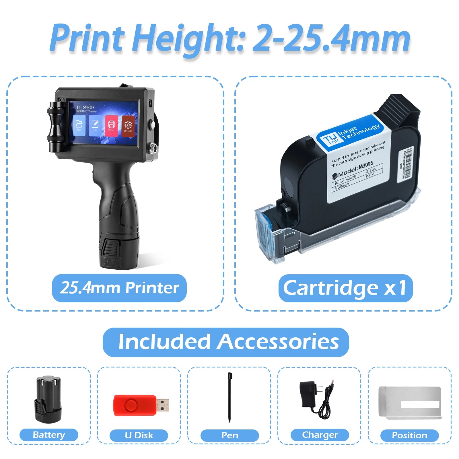 Handheld Inkjet Printer 12.7/25.4mm for QR Barcode Batch Date Number Logo Expiry Date Coding Machine 25 Languages Non-encrypted