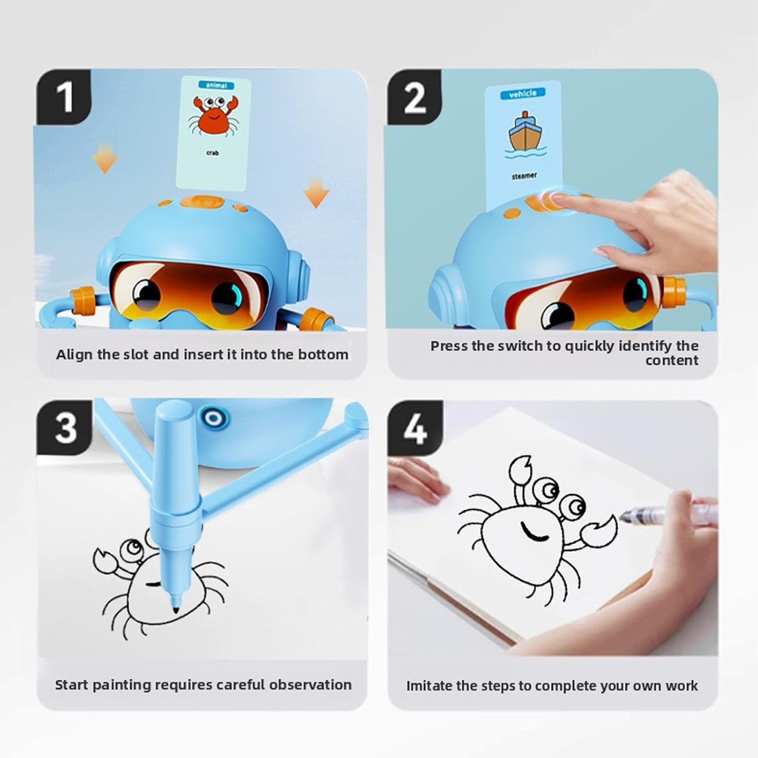 Luocute Drawing Robot for Kids with 100 Cards, Automatic Interactive Educational Drawing Machine, Montessori Painting Learning Tool for Early Learning Entertainment Birthday Party