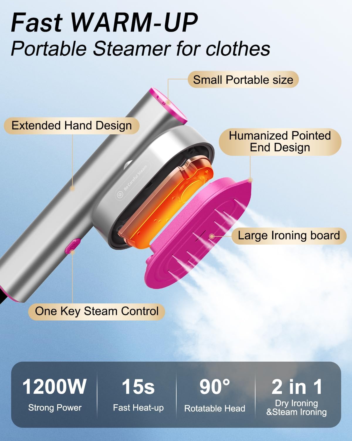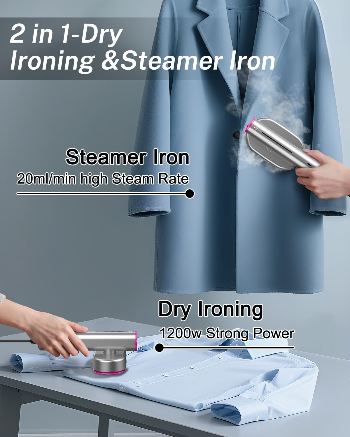 Mini défroisseur vapeur portable 2 en 1 pour vêtements, chauffage rapide en 10 secondes, défroisseur vapeur et fer à repasser, horizontal et vertical 1200 W sans effort pour voyage, bureau, maison