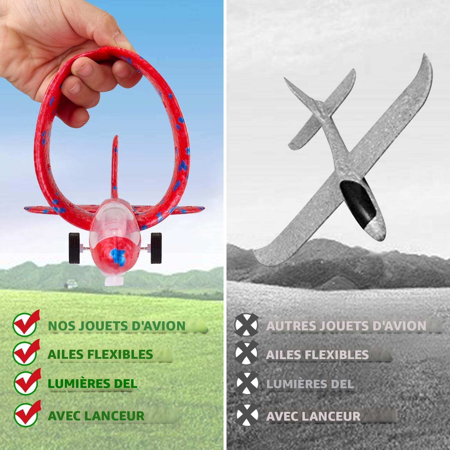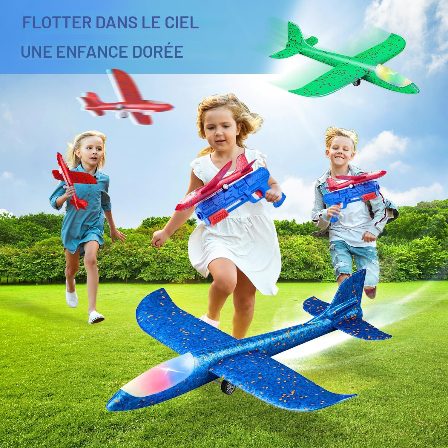 Neoot Lot de 3 lanceurs d'avion en mousse légère à DEL pour garçons, jouets de sport de plein air pour enfants de 4, 5, 6, 7, 8, 9, 10, 12 ans, garçons et filles