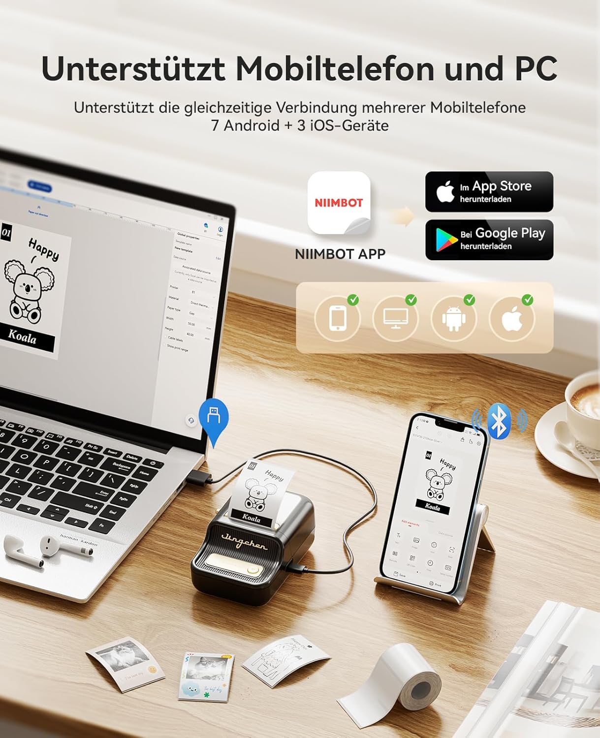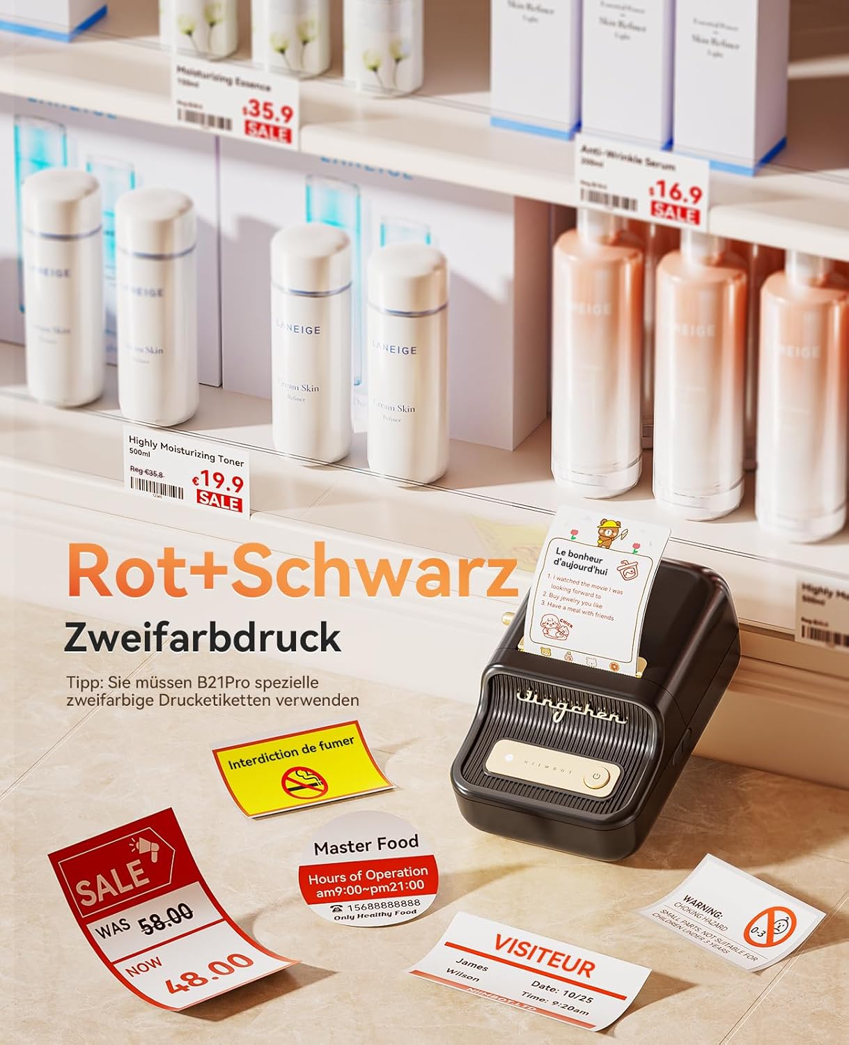 NIIMBOT B21 Pro Label Maker Machine with Tape, Upgrade HD Photo Printer Support Red and Black Output Printing
