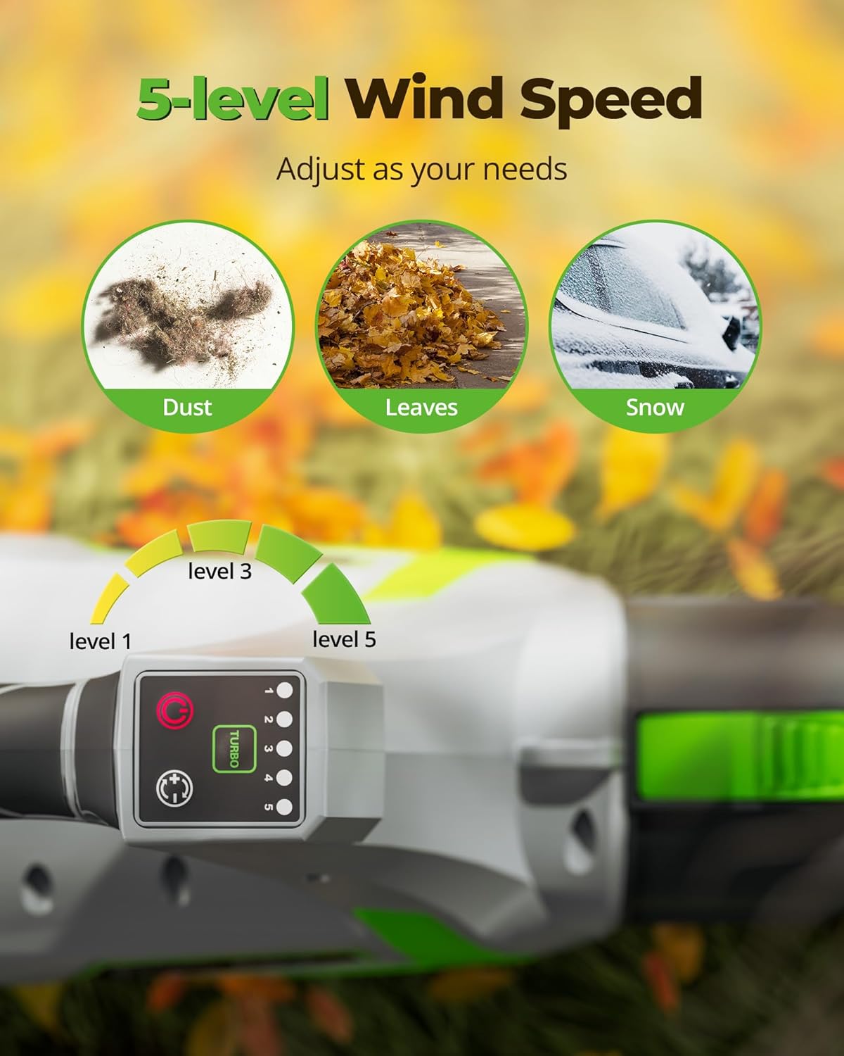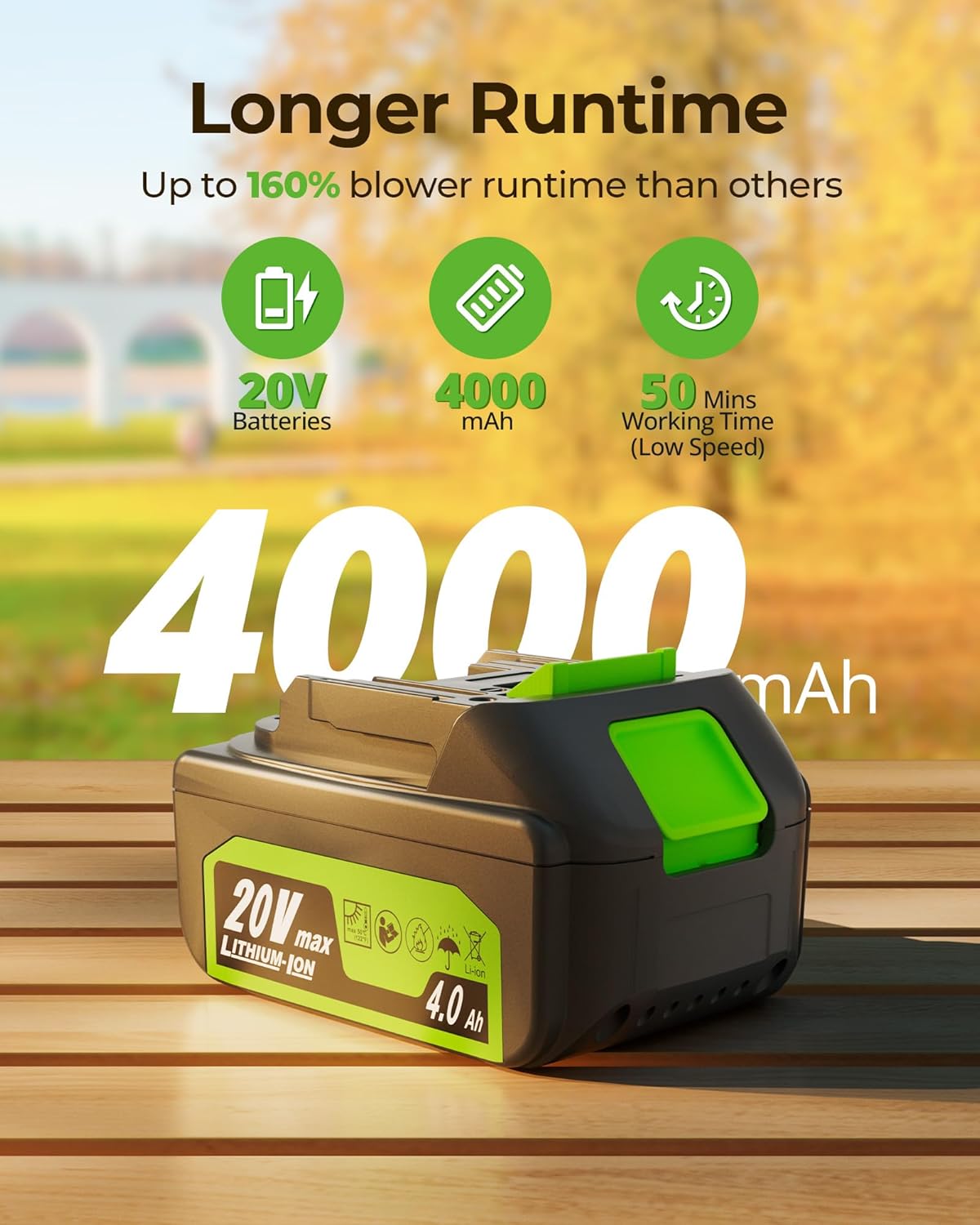 PATOOLIO Souffleur de feuilles électrique sans fil, 650 CFM/170 MPH avec batterie de 4000 mAh et chargeur, 5 modes de vitesse, puissant sans fil pour le nettoyage de terrasse, l'entretien de la