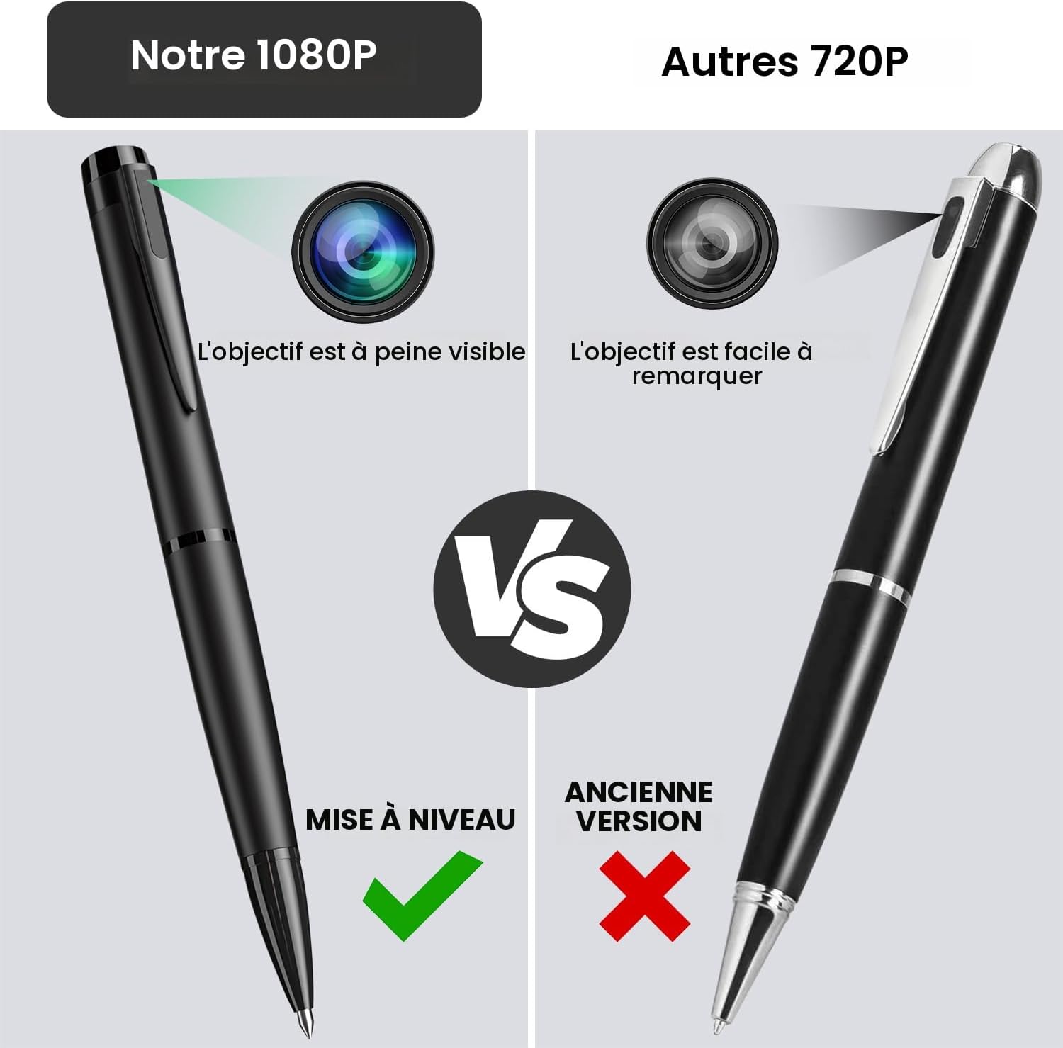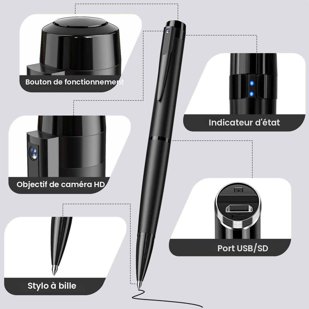 Stylo caméra cachée - Caméra espion de 64 Go avec vidéo Full HD 1080p | Mini caméra nounou pour la sécurité à domicile, le travail et l'apprentissage | Version 2023
