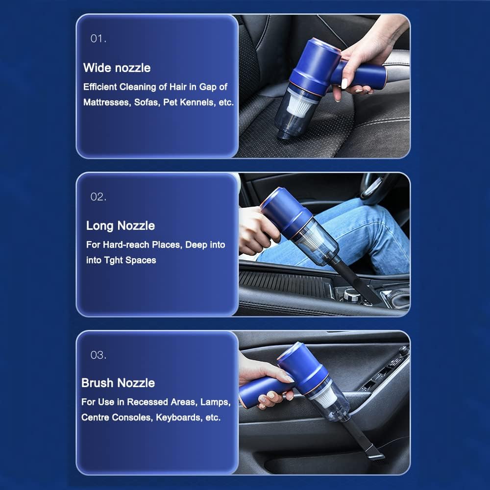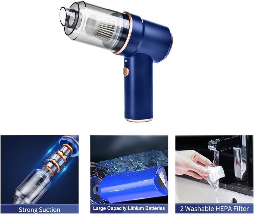 【Strong Suction】This handheld vacuum cleaner comes with a pure copper motor, which provides surging and stable power, it can easily remove stubborn dust. Quick and effective cleaning.