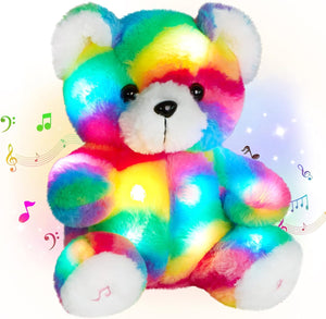 Athoinsu Ours en peluche musical arc-en-ciel lumineux à LED - Jouet en peluche mignon - Cadeau pour décoration d'anniversaire d'enfants - 27,9 cm