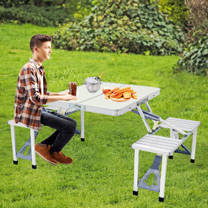 Carivia Folding Aluminum Picnic Table with 4 Chairs and Umbrella Hole Portable Adjustable Camping Table Fold Up Suitcase Table for Travel Picnic Camping BBQ Party