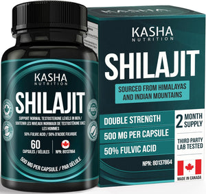 Shilajit pour homme Double force 500 mg par capsule – Shilajit pour homme et femme (Himalaya pur). 50 % d'acide fulvique. Approvisionnement de 2 mois. Himalaya et montagnes indiennes | Source d'acide